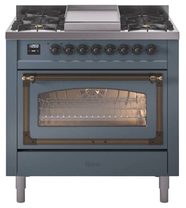 Introducing the new Nostalgie II 36" dual fuel range, a classic addition with a touch of innovation to any kitchen. This range feature sealed burners equipped with total black brass burner that has a non-stick nanotechnological coating, heavy cast iron grates, 3.5 cu. ft. total oven capacity and soft closing door system.Read More