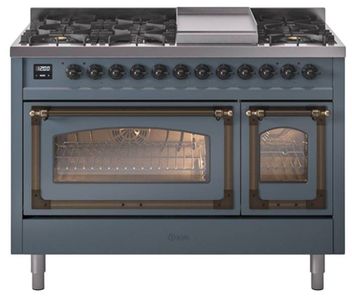 Introducing the new Nostalgie II 48" dual fuel range, a classic addition with a touch of innovation to any kitchen. This range feature sealed burners equipped with total black brass burner that has a non-stick nanotechnological coating, heavy cast iron grates, 3.5 + 1.52 cu. ft. total double oven capacity and soft closing door system.Read More